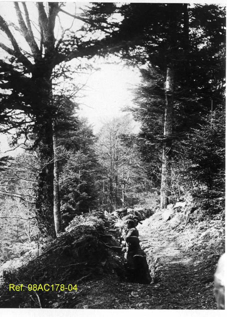 Soldats en position de combat en pleine forêt pendant la Première Guerre mondiale