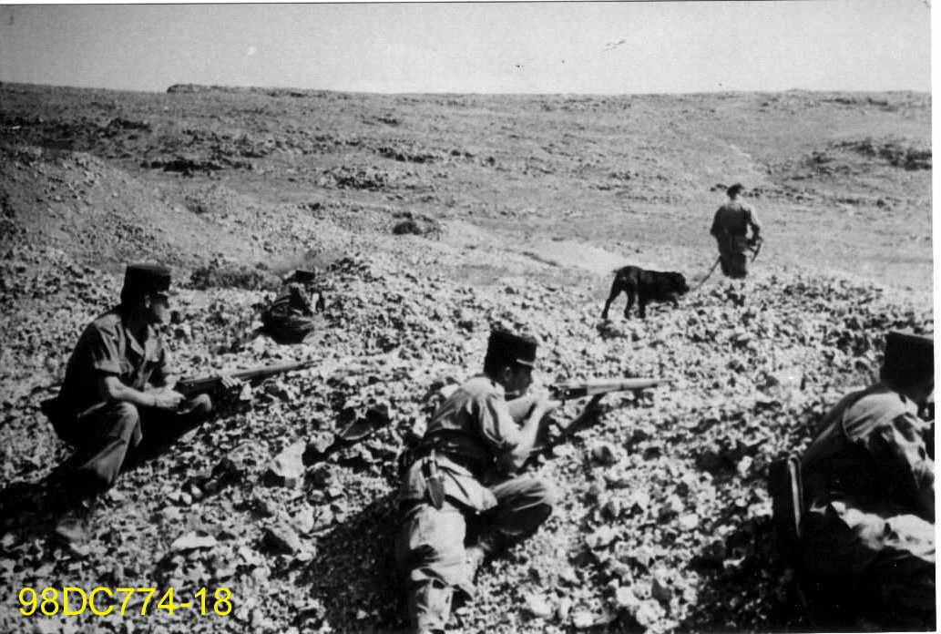 Ils semblent protéger un éclaireur avec un chien qui se trouve en avant.