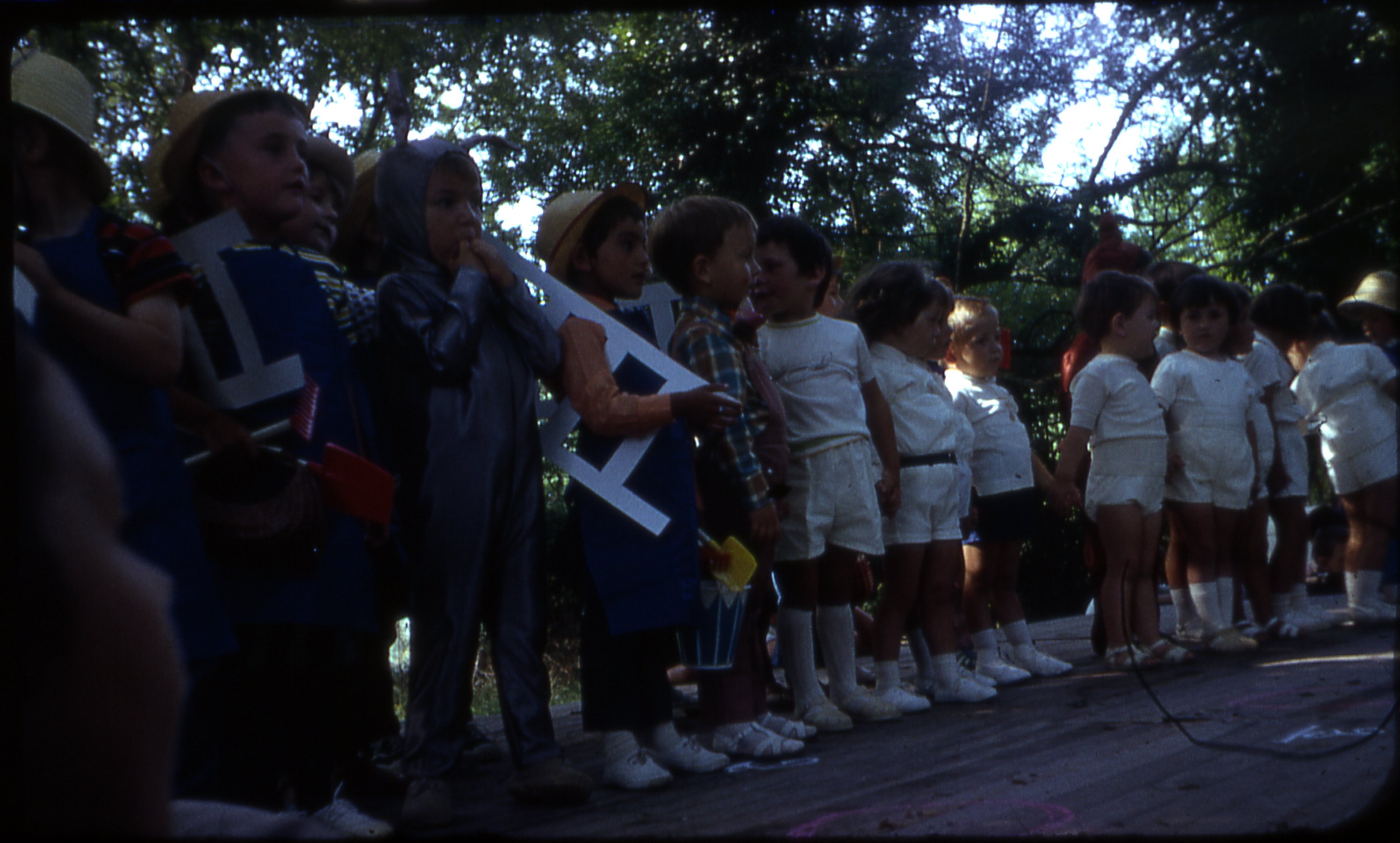 Spectacle avec des enfants déguisés à une kermesse en 1968.