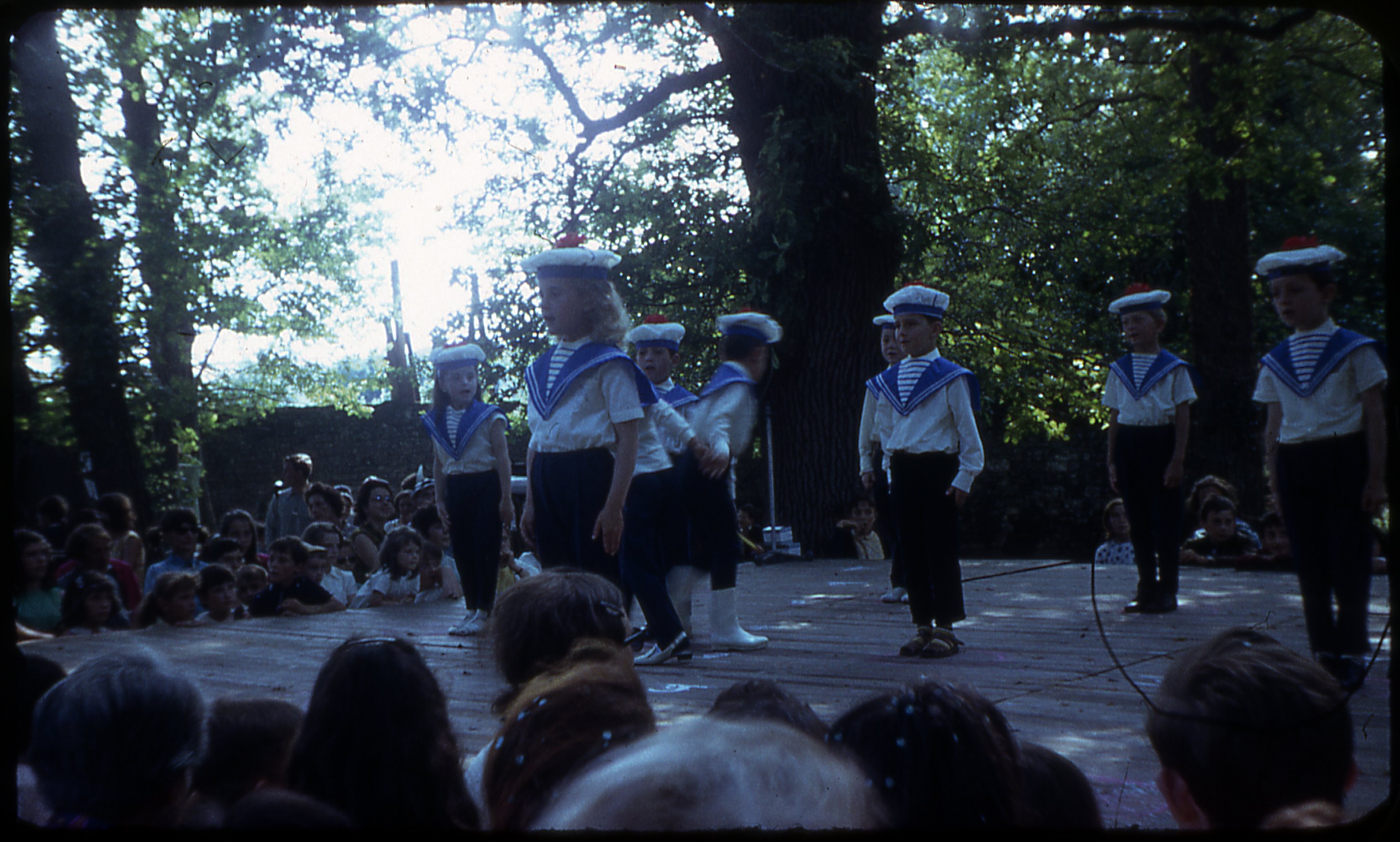 Spectacle avec des enfants en tenue de marin à une Kermesse en 1968
