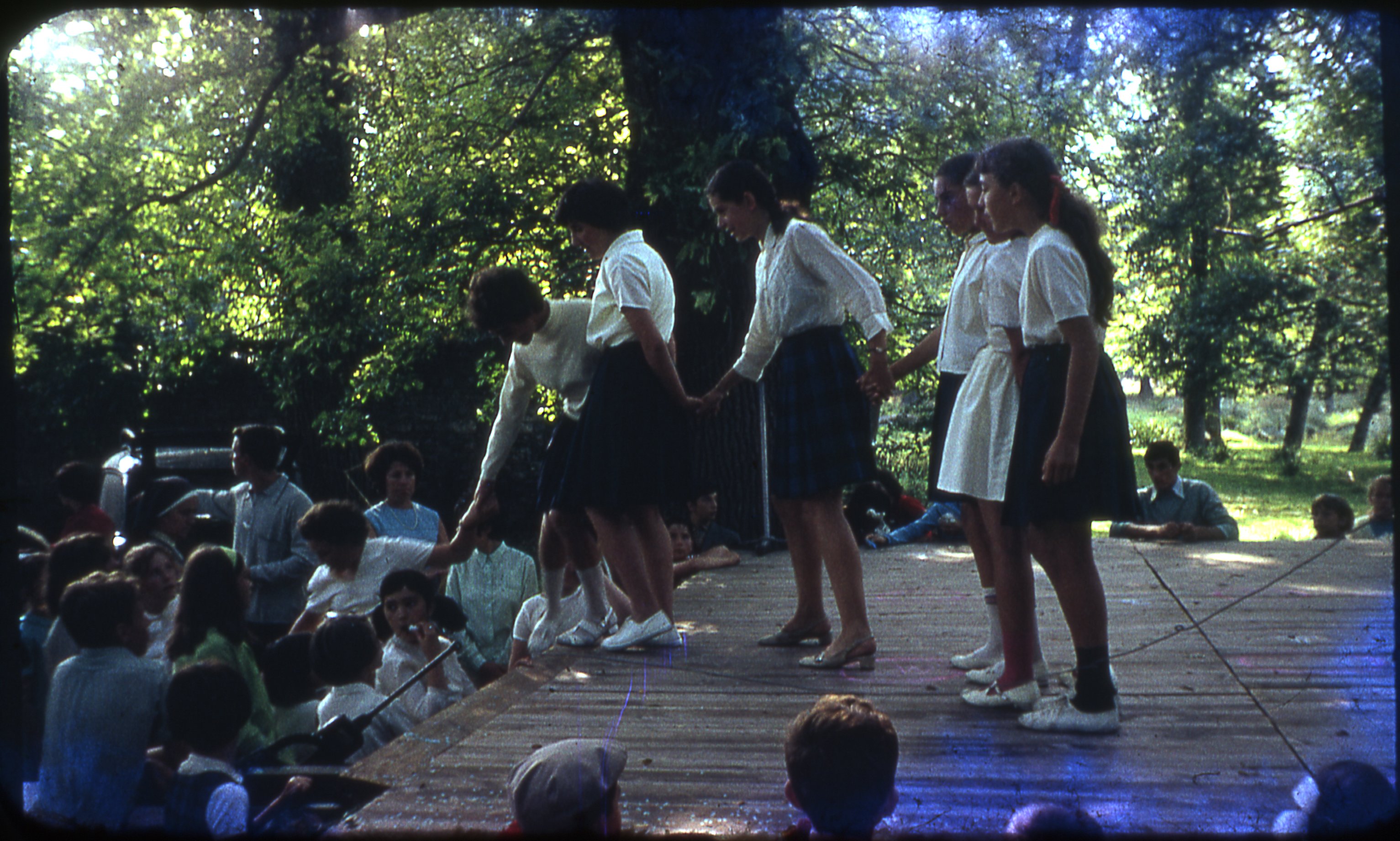 Spectacle avec des jeunes déguisés à une Kermesse en 1968.
