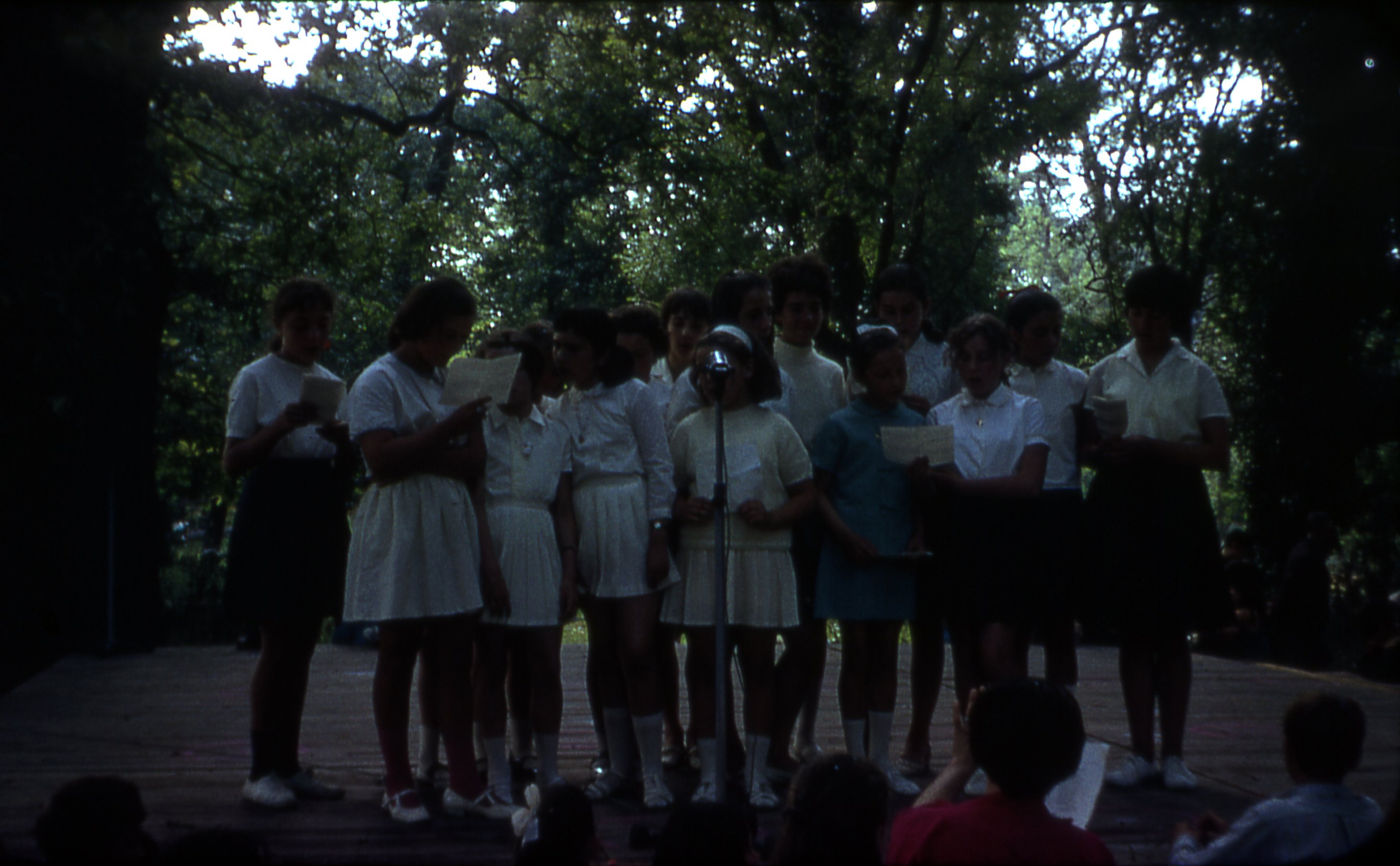 Spectacle avec des jeunes qui chantent à une Kermesse en 1968.
