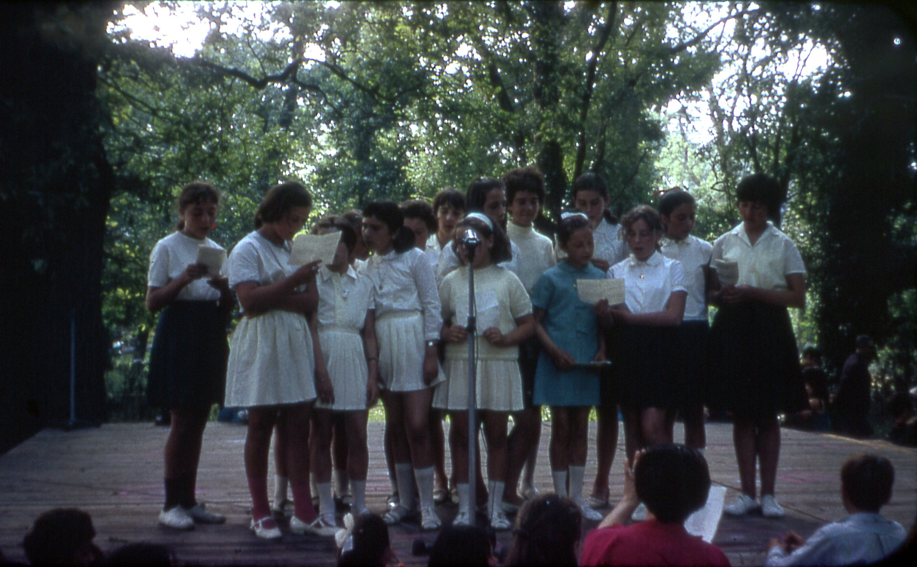 Spectacle avec des jeunes qui chantent à une Kermesse en 1968.