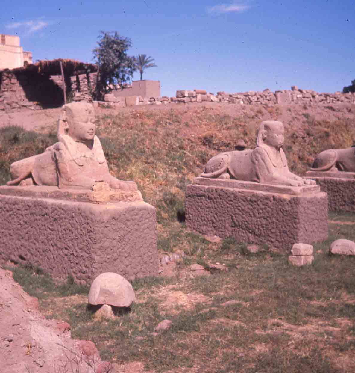 Photo prise dans l'Allée des Sphinx du temple de Louxor, durant le voyage en Égypte de Georges de Caunes.