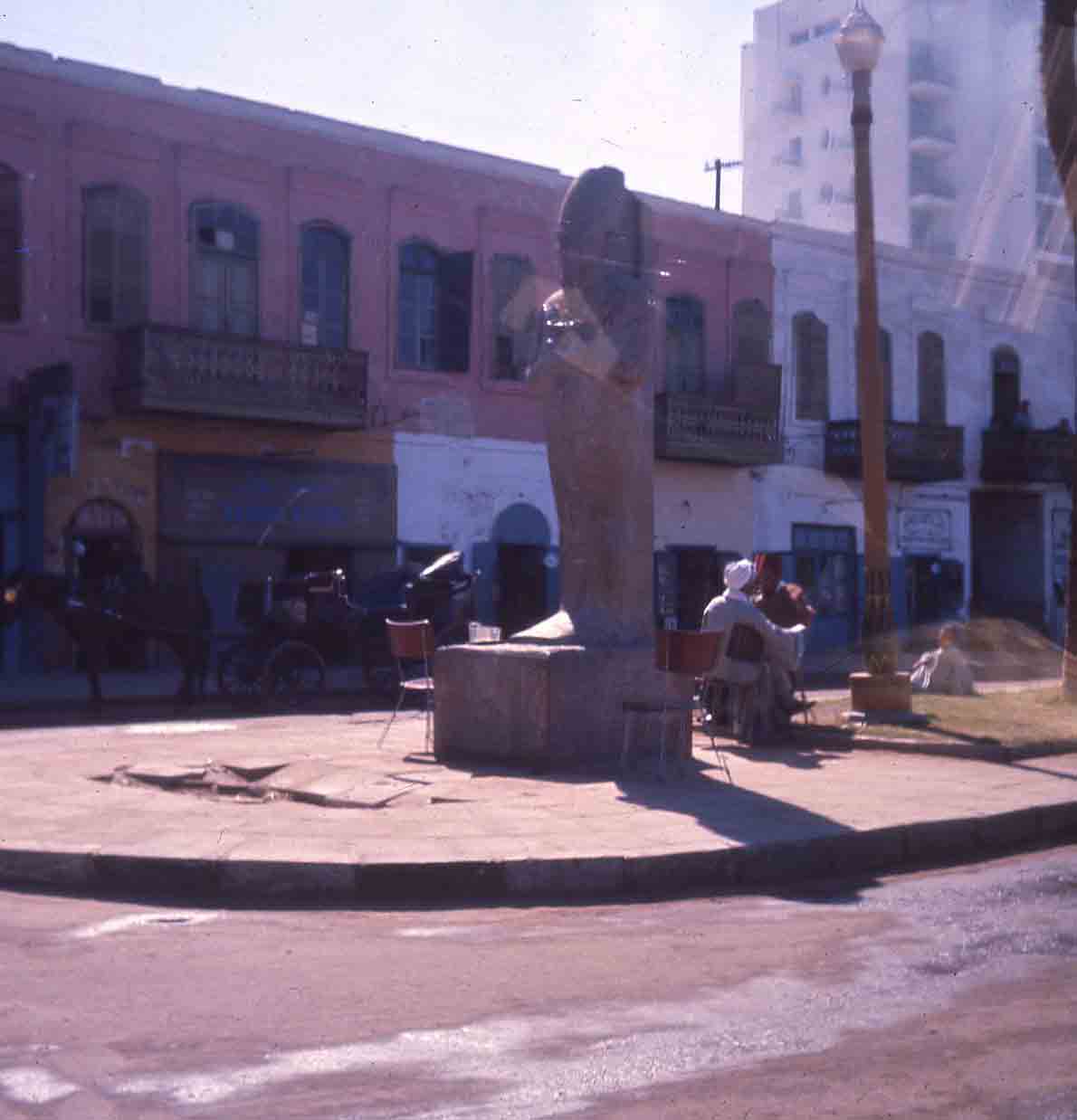 Prise de vue d'une statue dans une rue de Louxor, en Égypte.