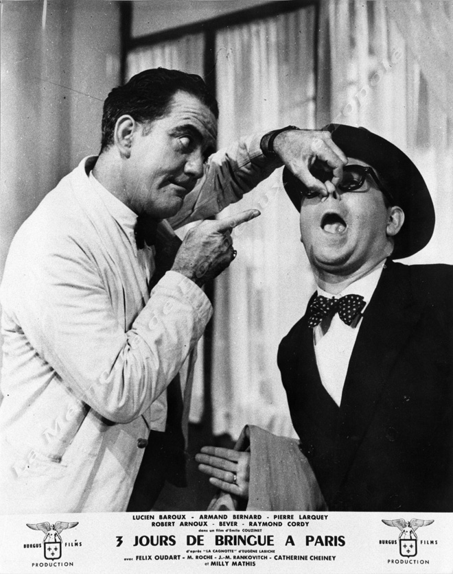 Reportage de deux photos sur le tournage du film d'Emile Couzinet "3 jours de bringue à Paris" en 1953.