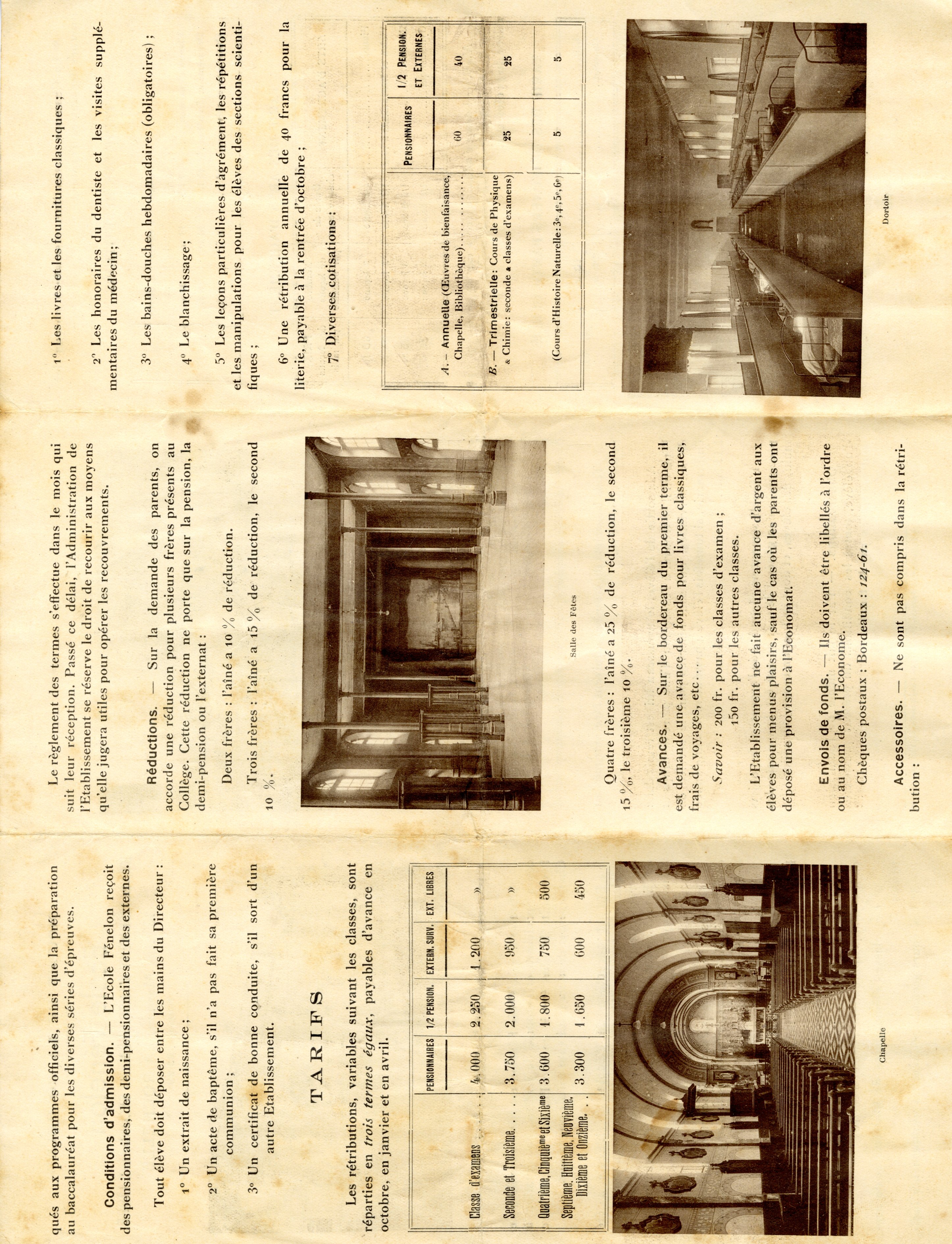 Tract publicitaire Ecole Fénelon Notre-Dame de La Rochelle en 1938.