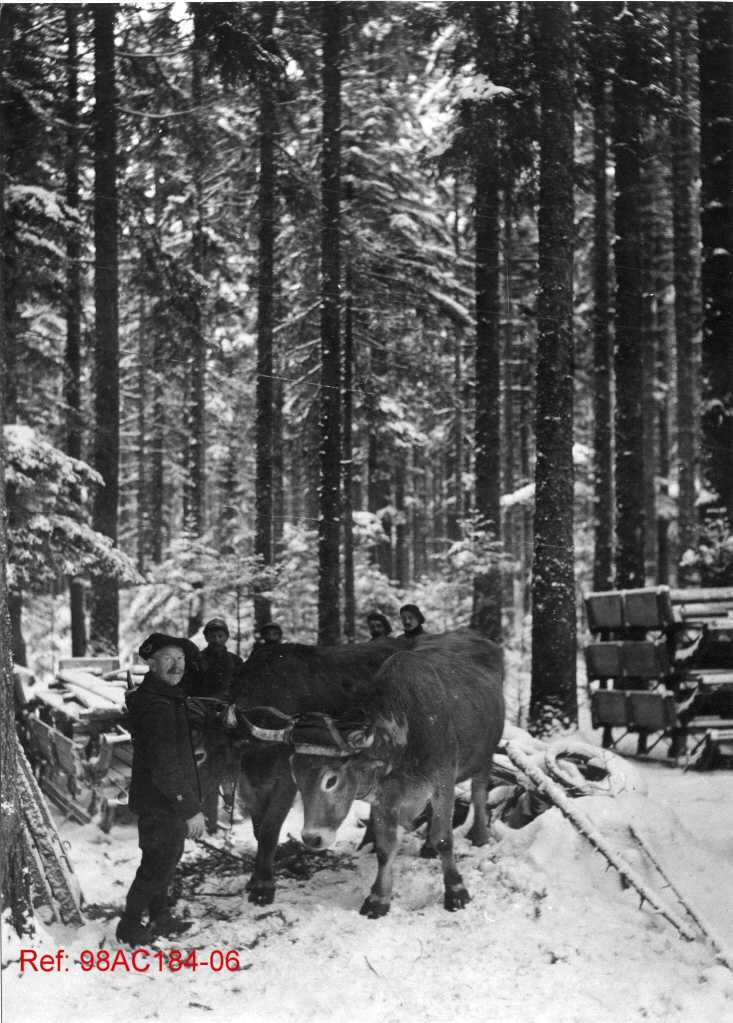 On y voit des soldats avec un attelage de boeufs et du bois coupé empilé sur le côté. Ce bois servait à se chauffer et à fabriquer des tranchées.