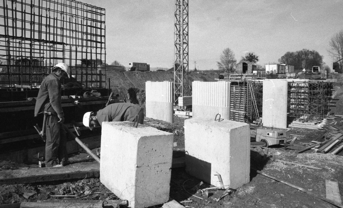 Le chantier de construction de la déviation de la RN20, près de Magnac-Bourg en Haute-Vienne, en février 1991.