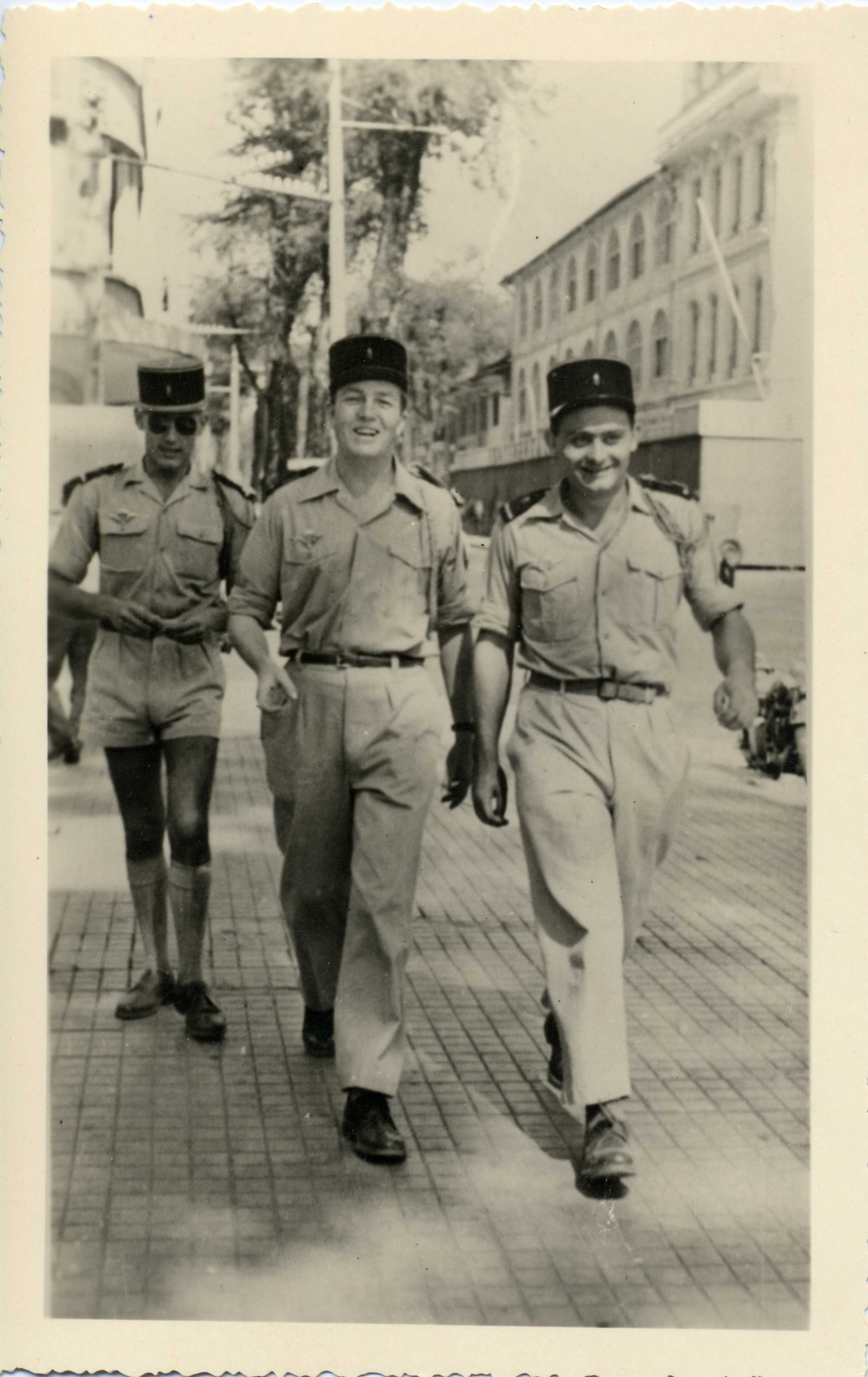 3 officiers se promènent dans Saïgon. La photo date de 1955 alors que la guerre a été perdue en 1954