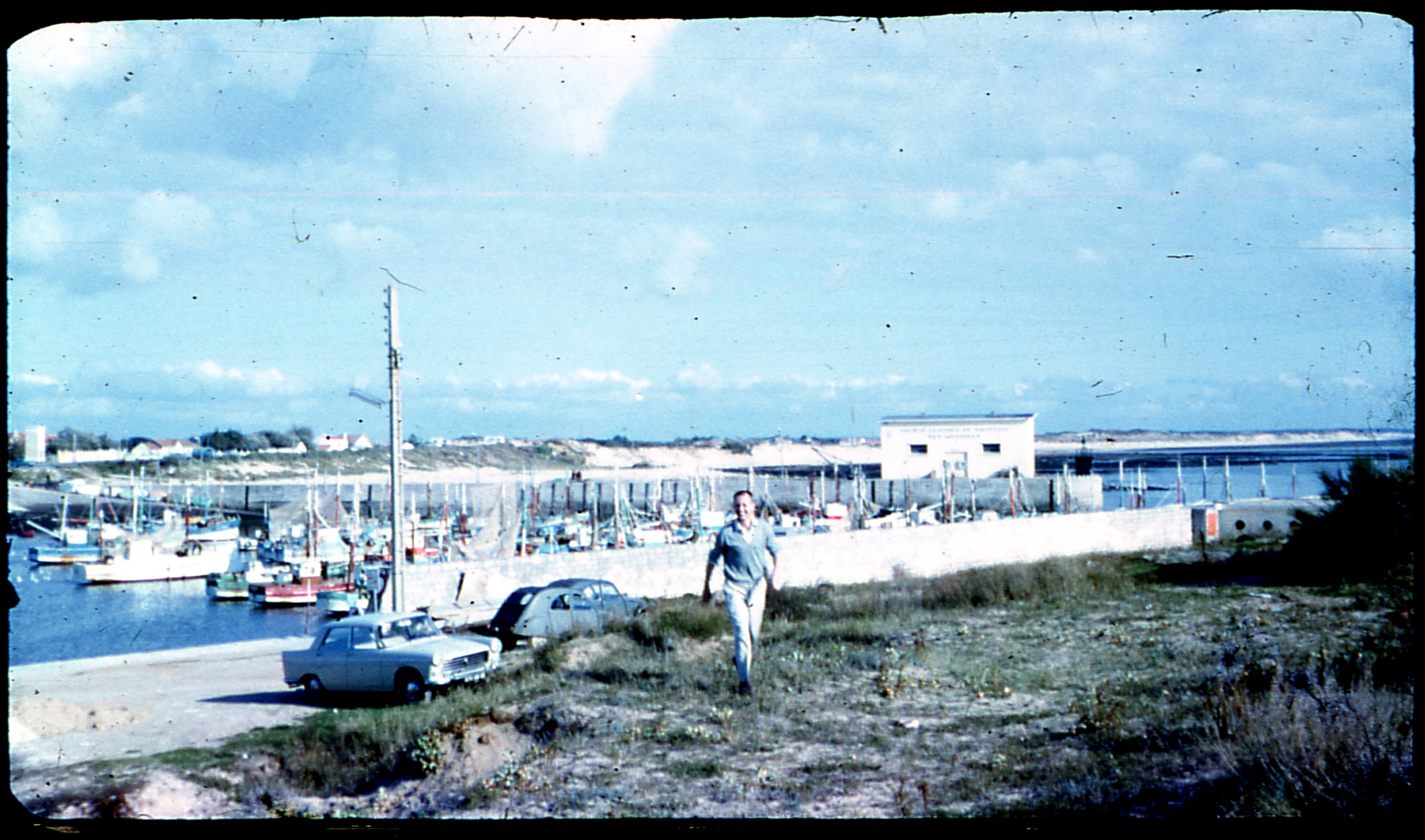 Un homme devant un port sur l'île d'Oléron dans les années 1970