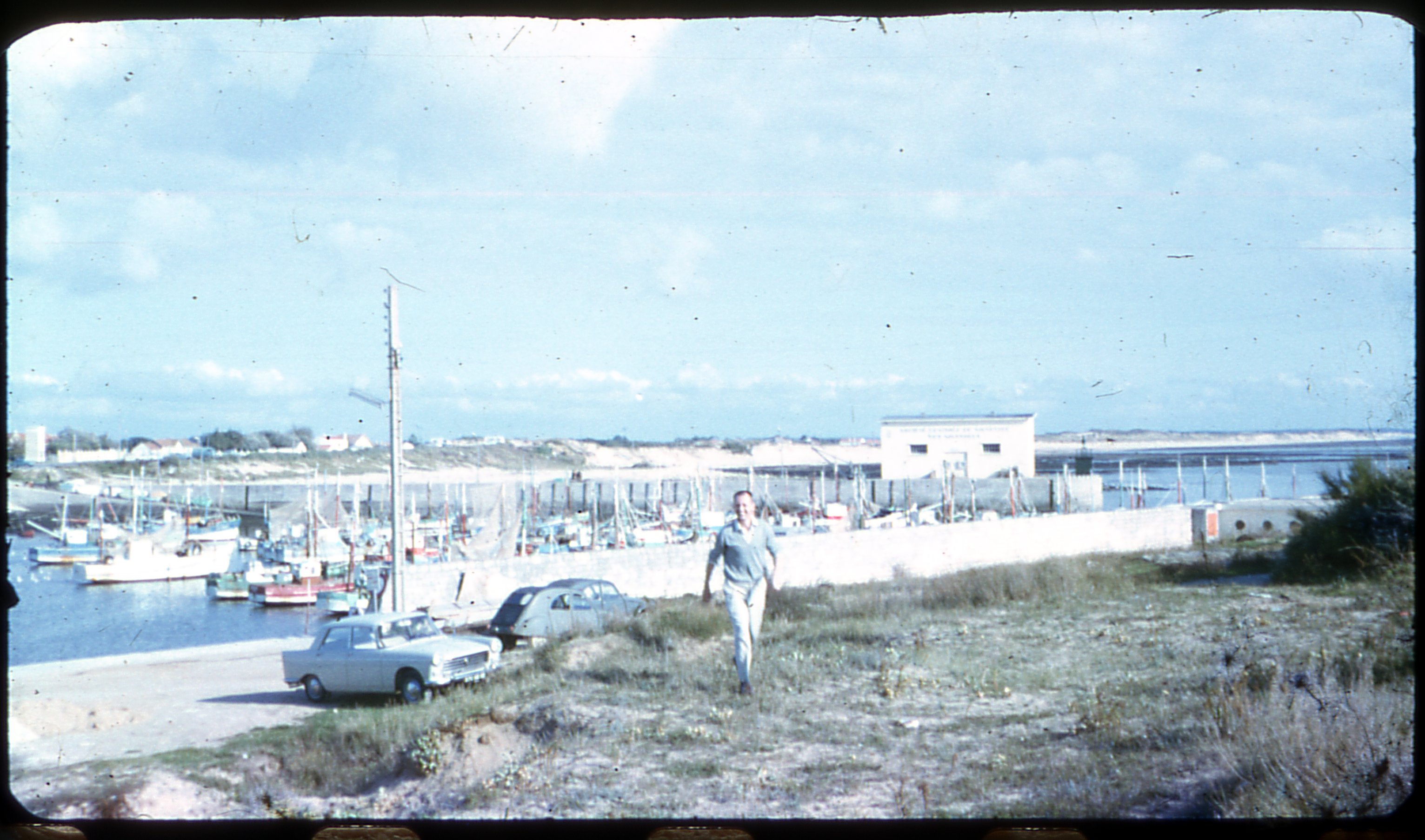 Un homme devant un port sur l'île d'Oléron dans les années 1970