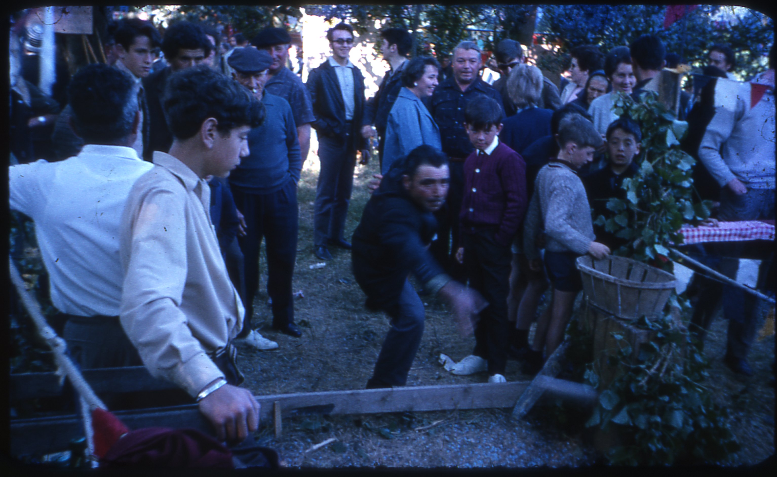 Un homme joue à une kermesse en 1967