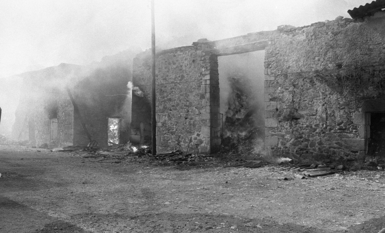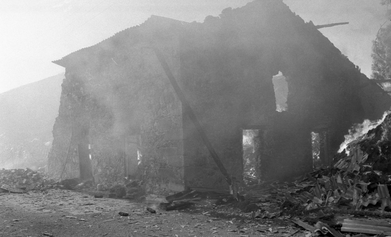 Un incendie détruit une grange à Couzeix, en Haute-Vienne, en août 1990.