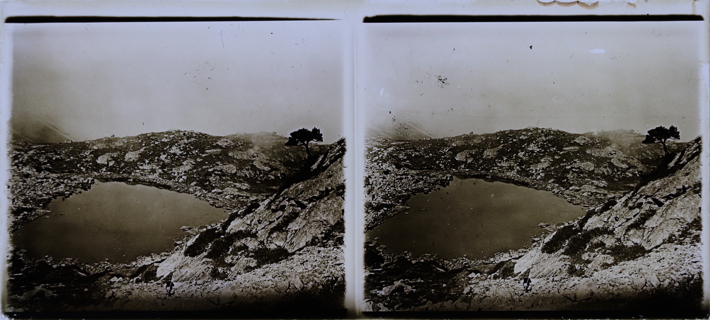 Un des lacs dans les massifs des Pyrénées, dans les années 1920.