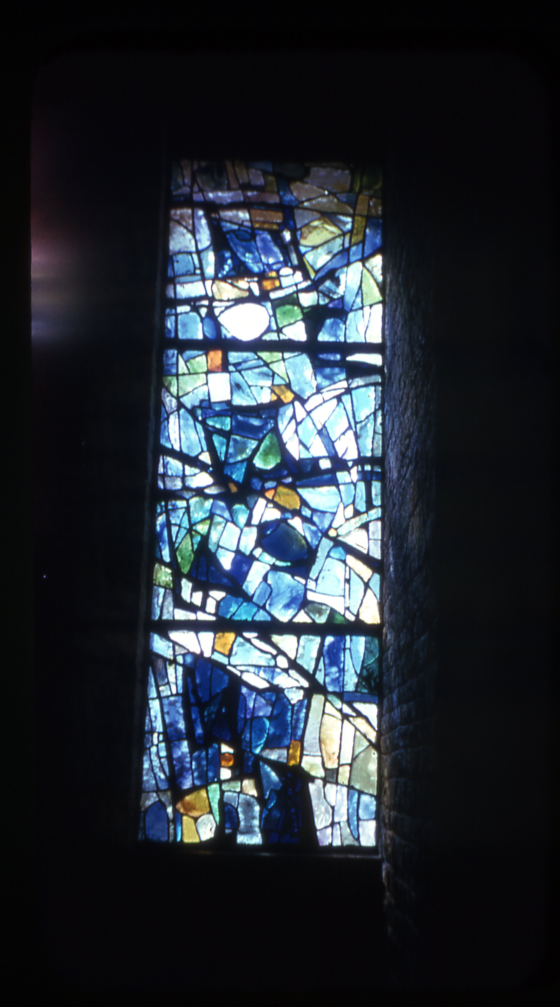 Un vitrail de la Chapelle Notre-Dame à la Cotinière sur l'Île d'Oléron dans les années 1960-1970.