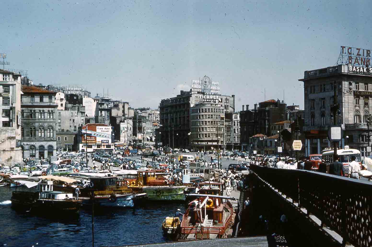 Bâtiments nombreux, circulation importante, bateaux stationnés.