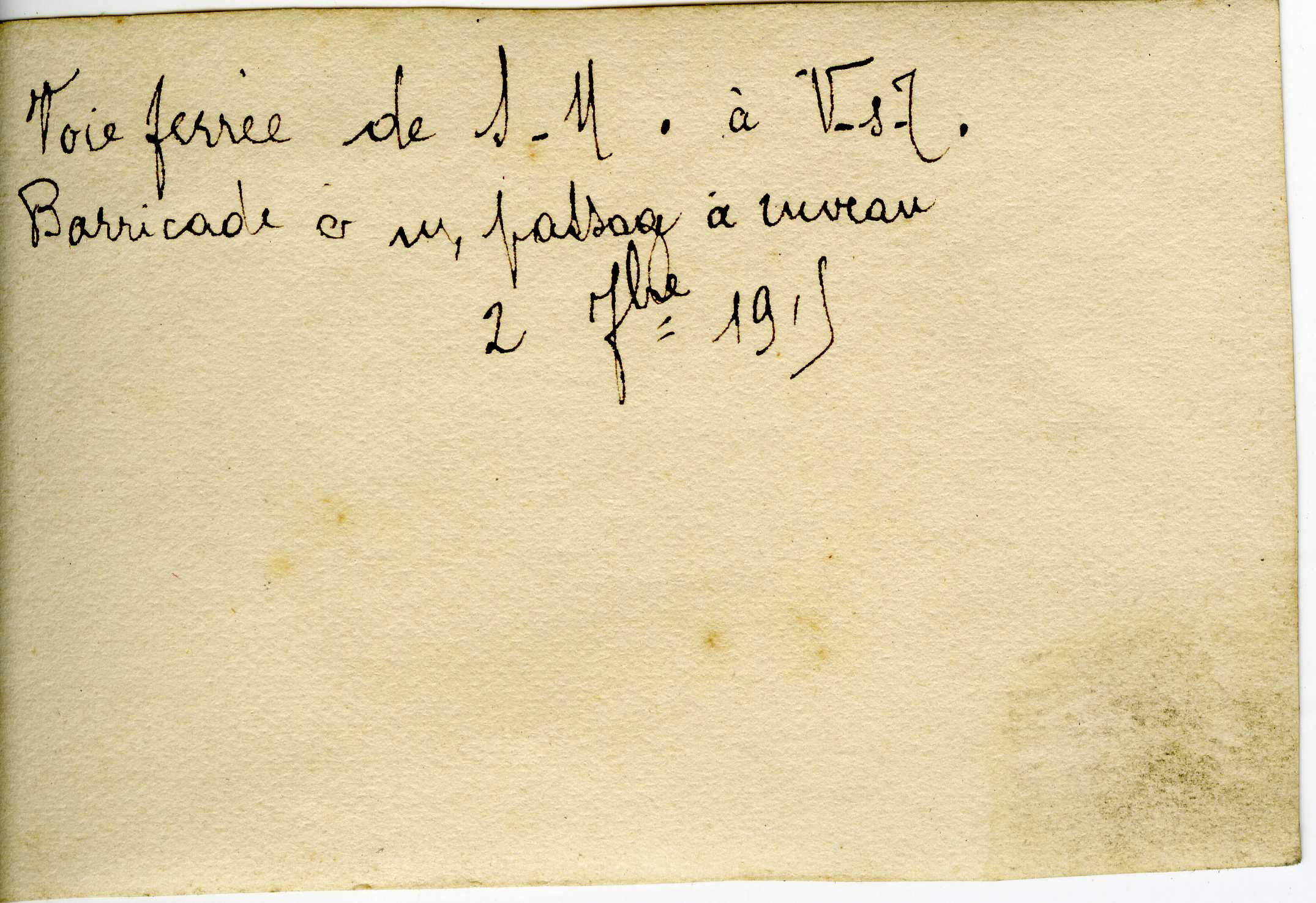 Voie ferrée avec barricade au fond en 1915.