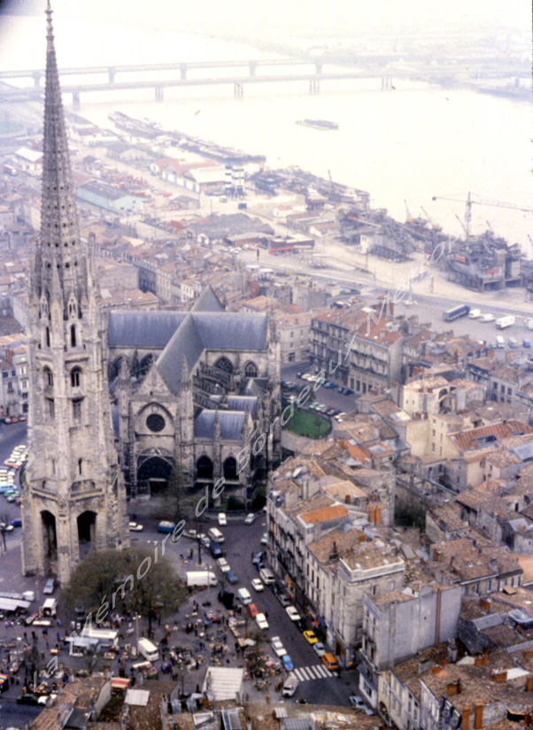 Vue aérienne du quartier Saint-Michel : au centre la place et l'église