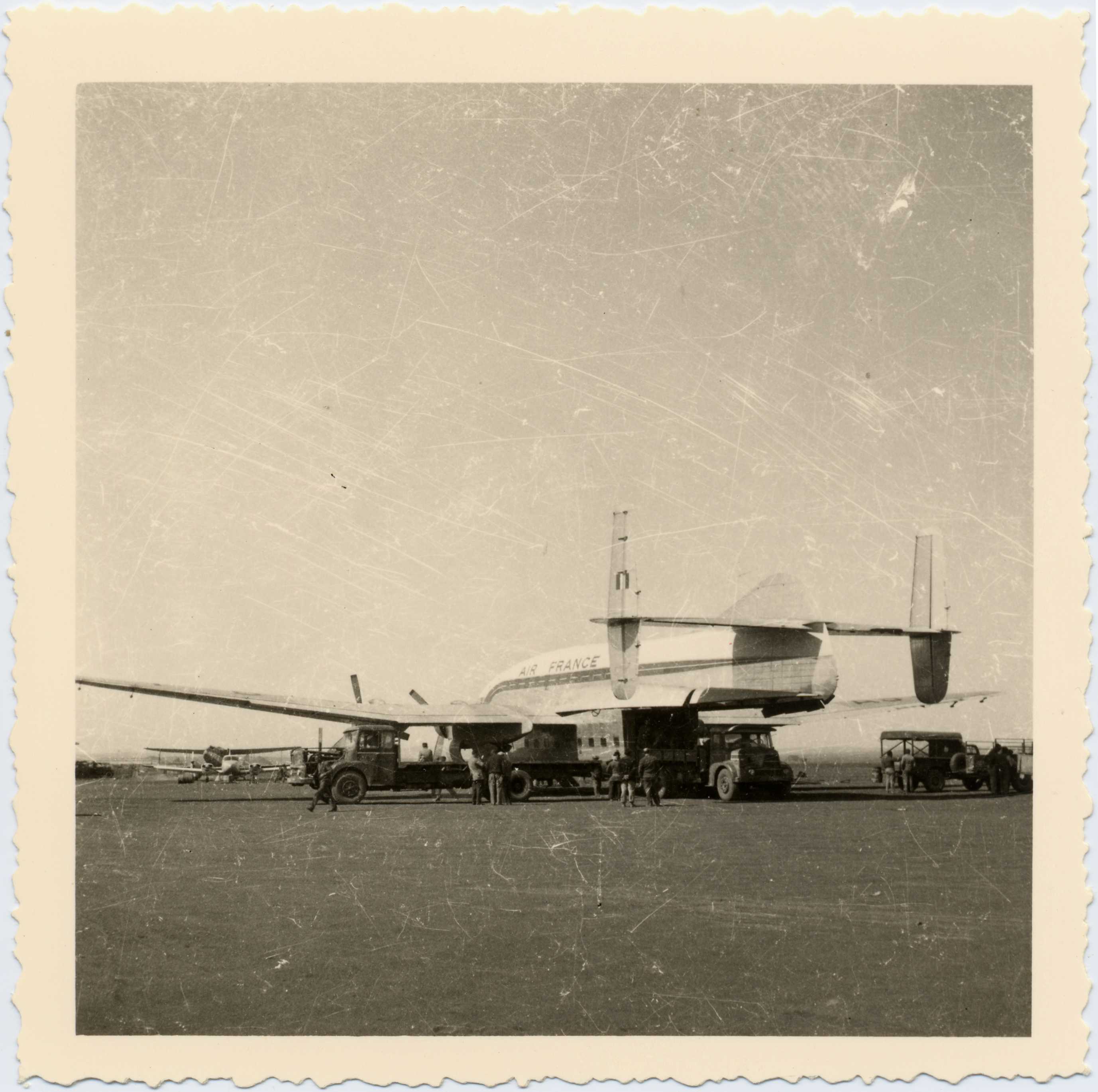 Vue générale d'un chargement ou déchargement d'un avion militaire Bréguet.