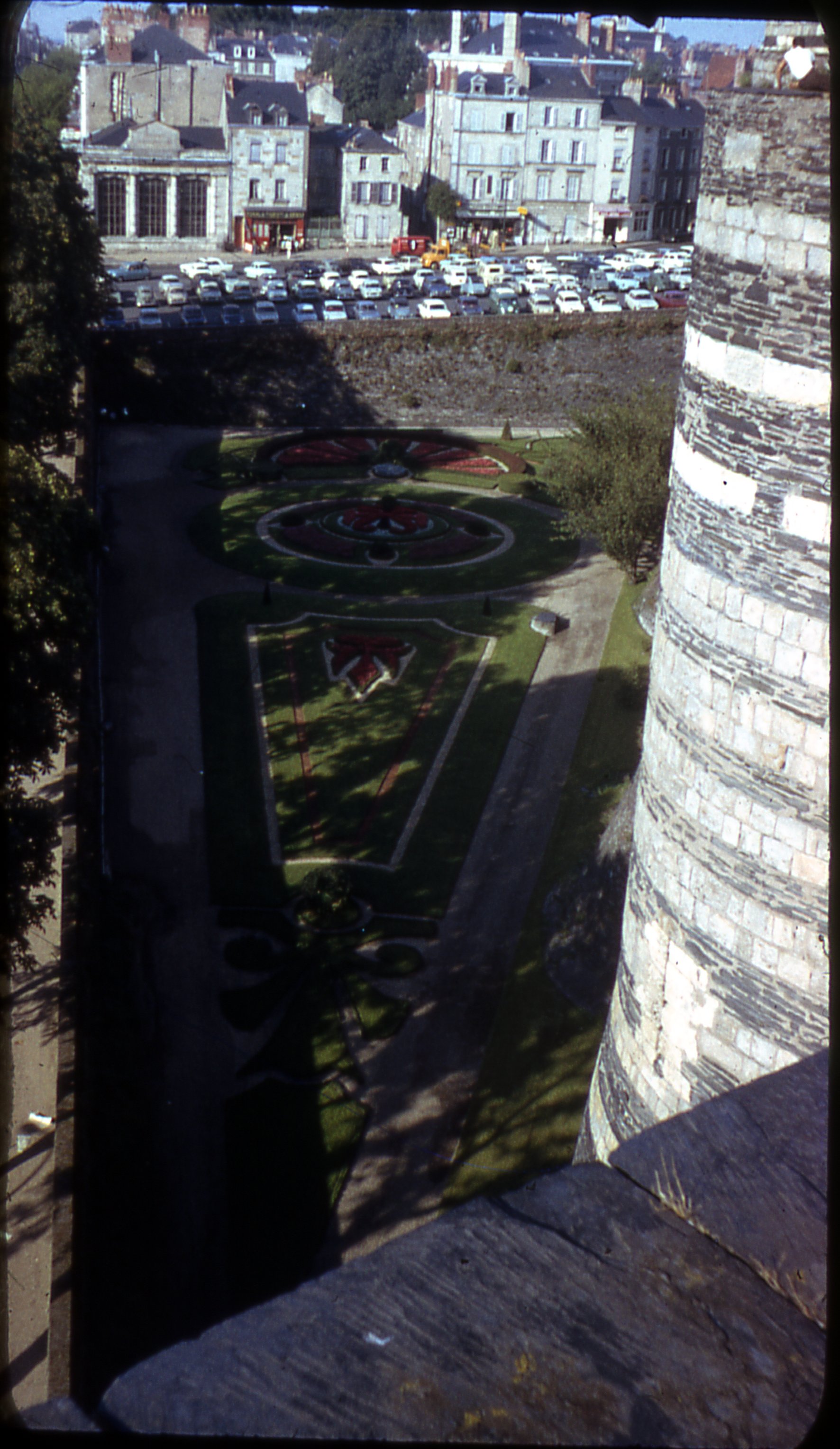 Vue sur les jardins du château d'Angers dans les années 1960.