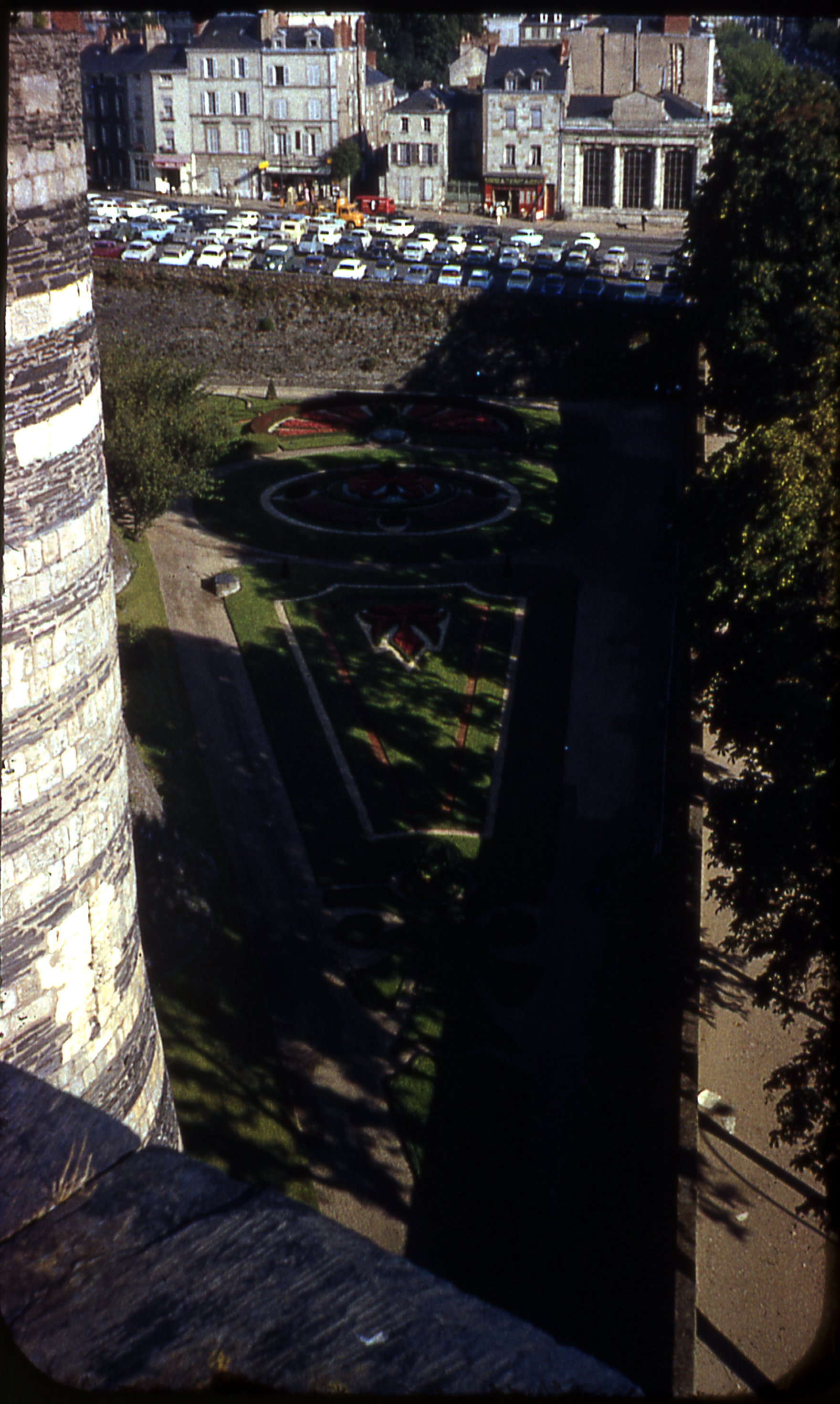 Vue sur les jardins du château d'Angers dans les années 1960.