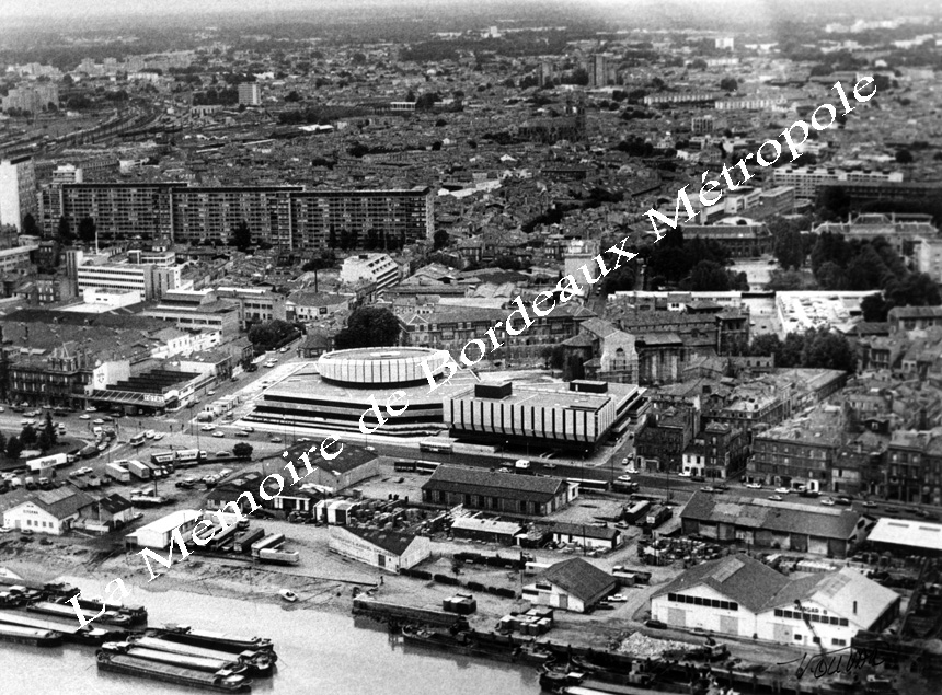 Vues aériennes su quartier Sainte Croix en 1975 et 1979 avant la rénovation de l'école des Beaux-Arts, de l'église et de sa place. Vue d'ensemble des quais Sainte Croix et Paludate.